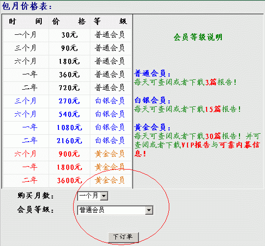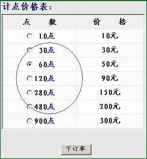 第三步:选择购买点数或包月时间(下订单)