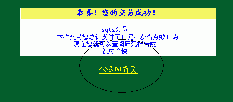 第八步:完成支付,返回中国证券投资网首页
